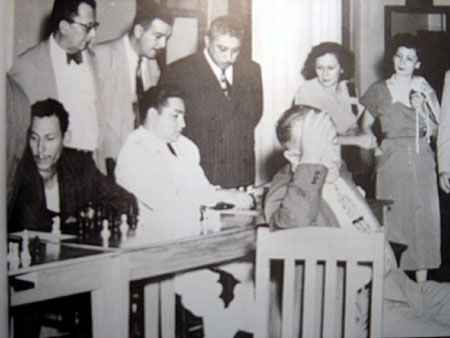 | Najdorf dando una simultánea en Rosario (Argentina) |
